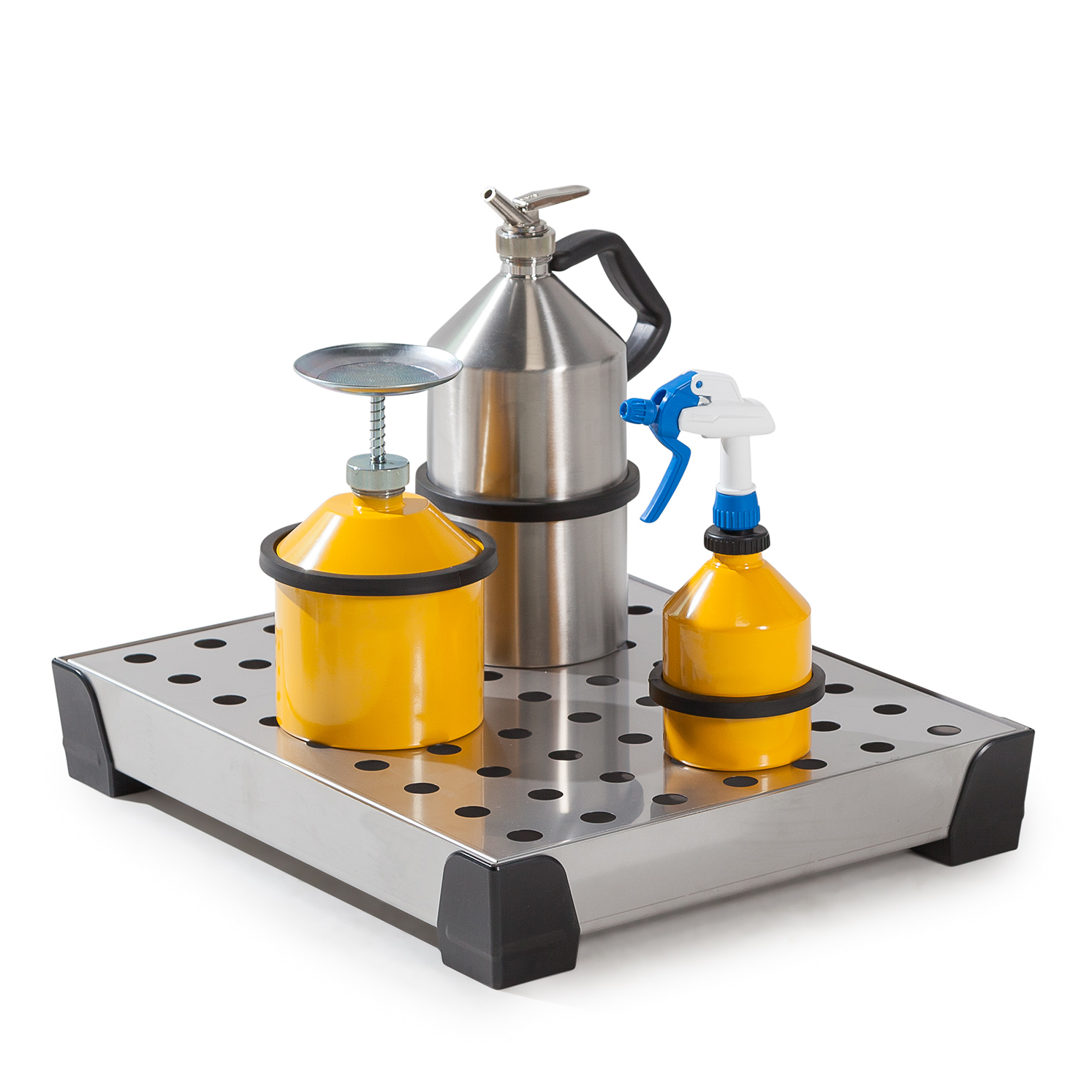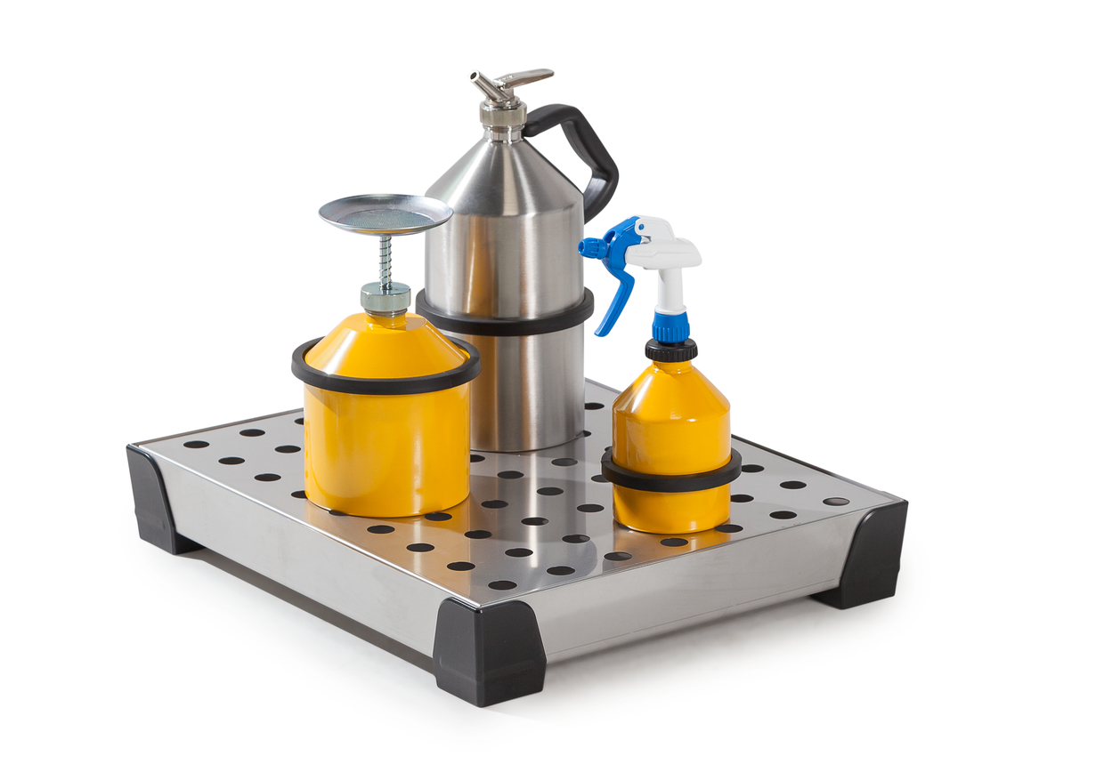 Cubeto de retención para envases pequeños de acero inox.