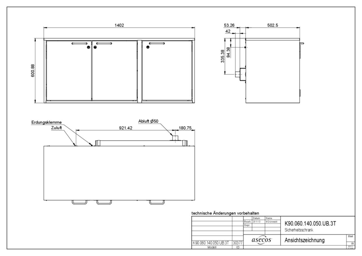 armario de seguridad combinado comprobado en horno de pruebas según EN 14470-1 modelo K90.060.140.050.UB.3T