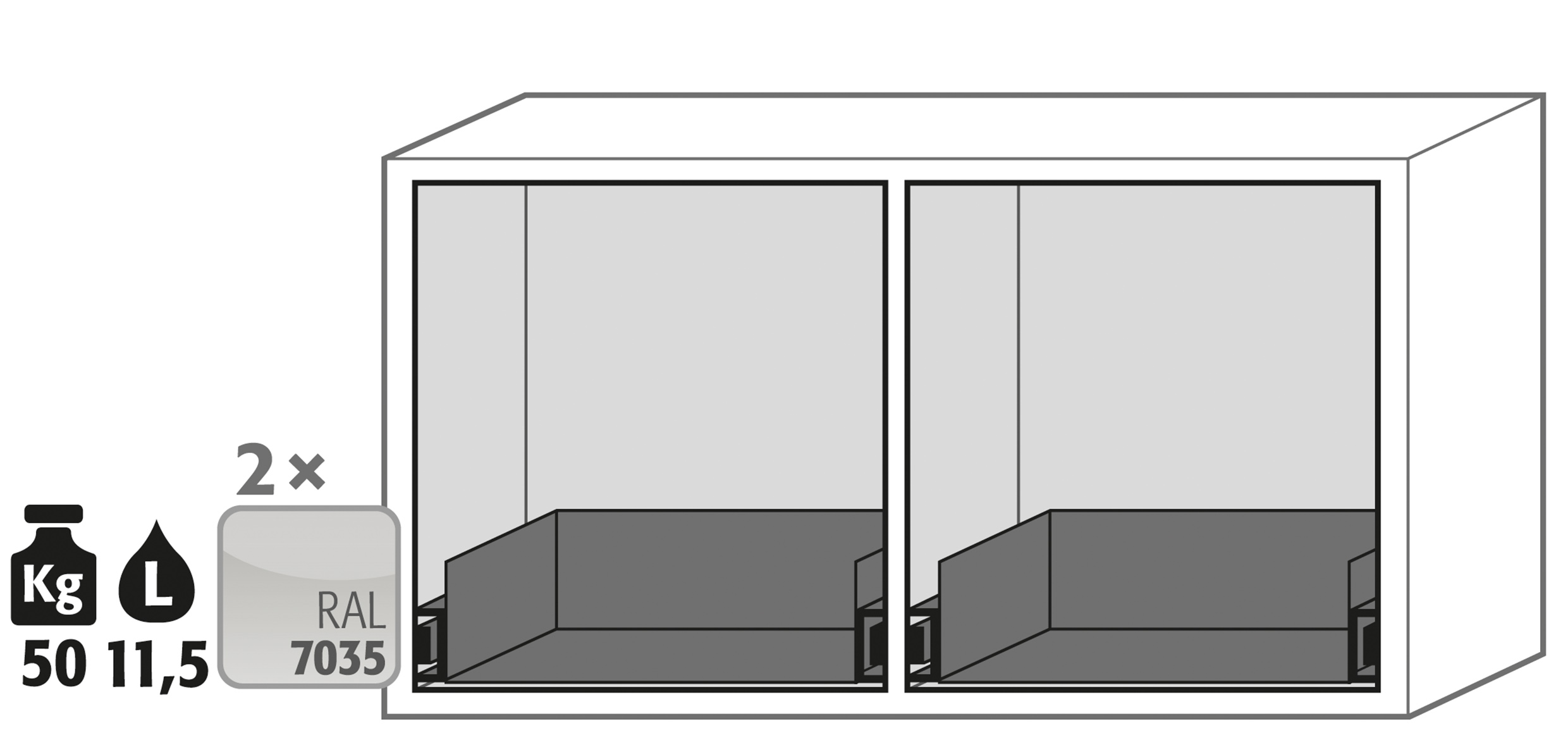 gris claro (RAL 7035), equipamiento interior con 2 x cajón (plancha de acero recubrimiento plástico)