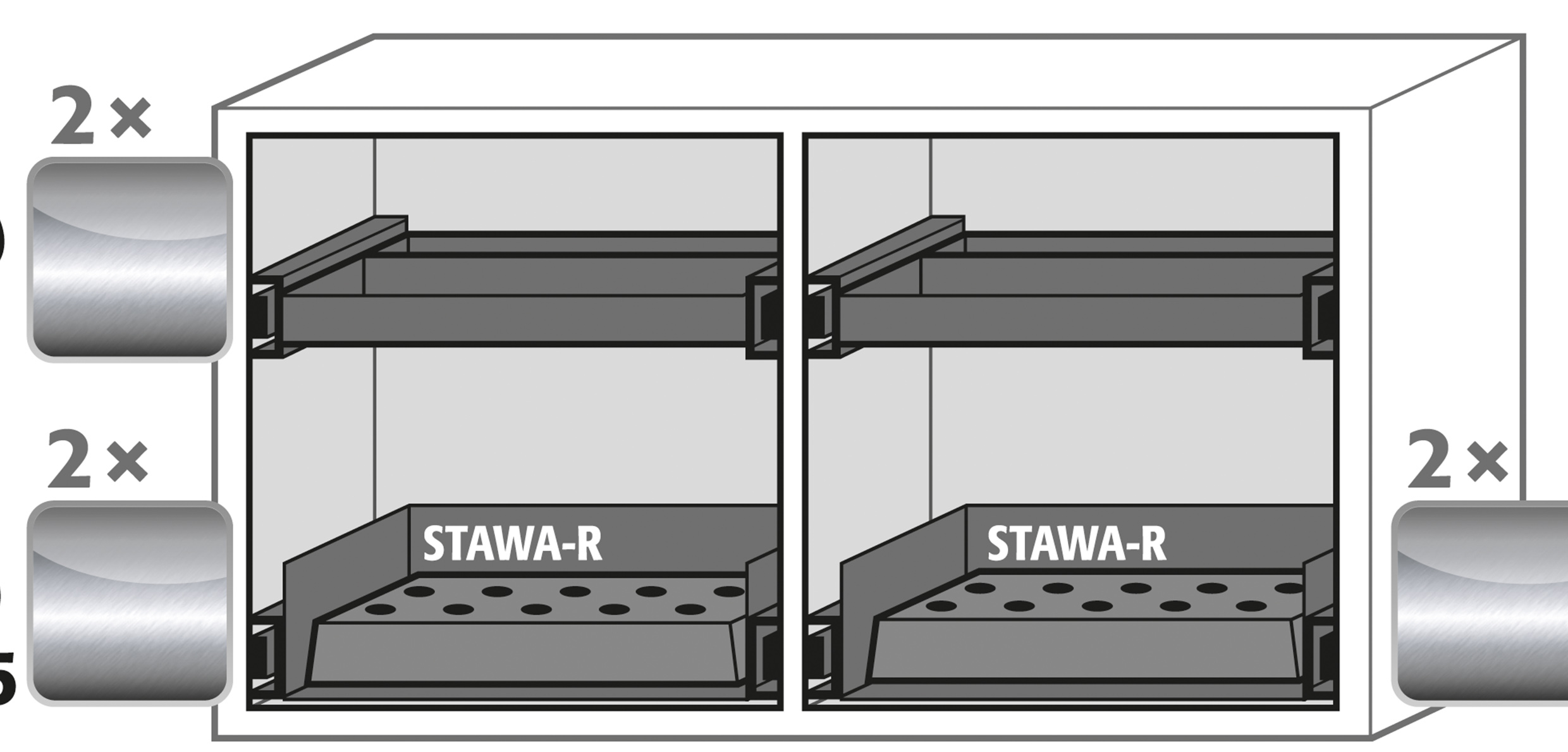 Tenga en cuenta los respectivos reglamentos y normas nacionales vigentes para el almacenamiento de sustancias peligrosas durante la configuración de un armario de seguridad. Si tiene alguna duda, los expertos de asecos le ayudarán encantados.