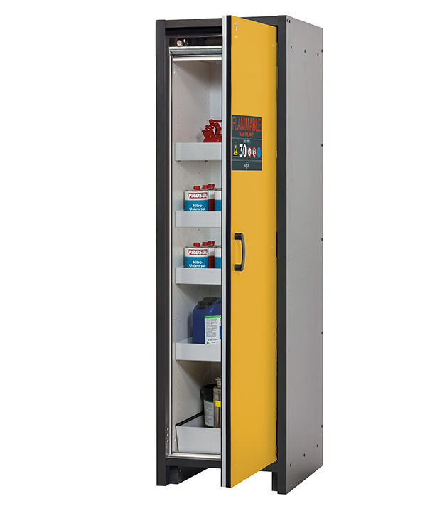 Tenga en cuenta los respectivos reglamentos y normas nacionales vigentes para el almacenamiento de sustancias peligrosas durante la configuración de un armario de seguridad. Si tiene alguna duda, los expertos de asecos le ayudarán encantados.