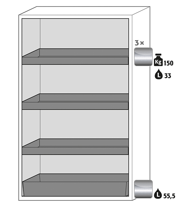 gris claro (RAL 7035), equipamiento interior con 3 x bandeja tipo cubeta, 1 x cubeto de retención (acero inoxidable 1.4016)