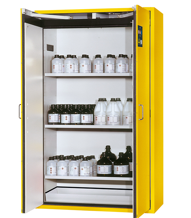 amarillo seguridad (RAL 1004), equipamiento interior con 3 x bandeja, 1 x cubeto de retención (plancha de acero recubrimiento plástico)