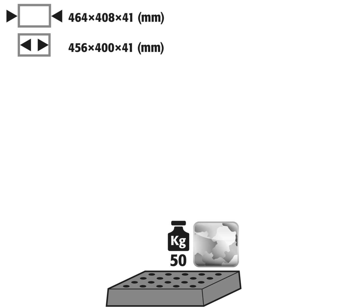 - Dimensiones interior: A x F x H (mm) 456 x 400 x 41