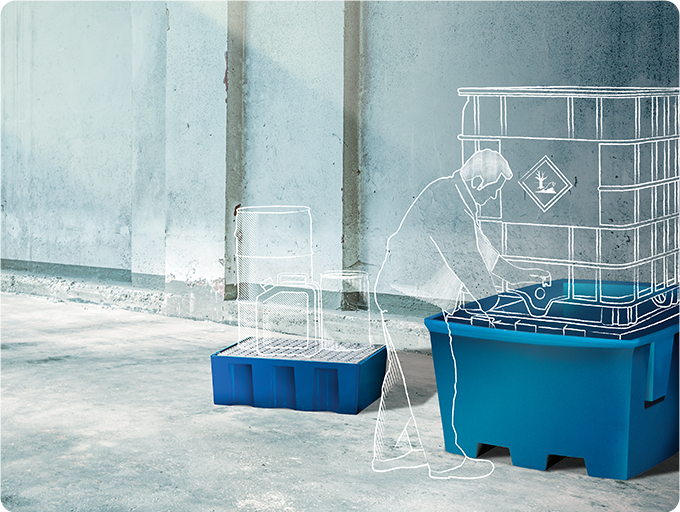 La cubeta de retencion adecuada para su aplicación y las sustancias peligrosas que desea almacenar