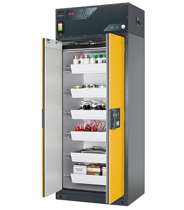 Kkiertoilmasuodattimen säilytyskaappi tyyppitestattu standardien mukaan EN 14470-1 malli FX90.229.090.WDAC