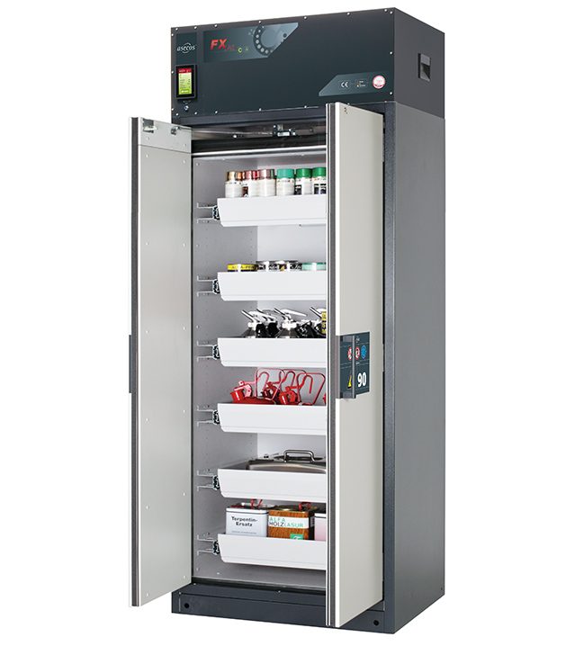 Kkiertoilmasuodattimen säilytyskaappi tyyppitestattu standardien mukaan EN 14470-1 malli FX90.229.090.WDAC
