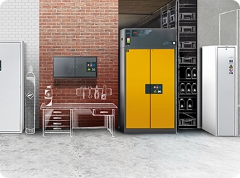 Veuillez respecter les lois, règles nationales applicables lors de la configuration d'une armoire de sécurité concernant le stockage des matières dangereuses. En cas de doute, les experts asecos restent à votre disposition.
