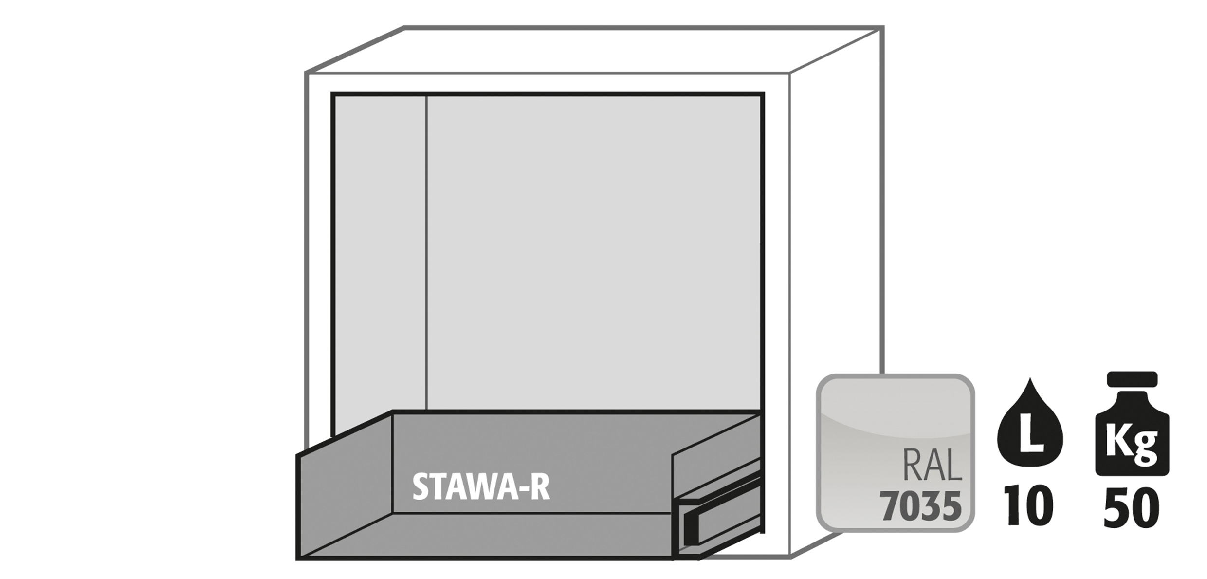 Blanc Laboratoire (sim. RAL 9016), équipée avec 1 x tiroir (tôle d'acier revêtement époxy)