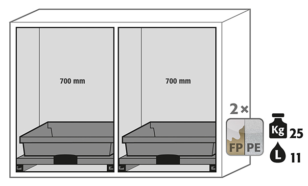 Veuillez respecter les lois, règles nationales applicables lors de la configuration d'une armoire de sécurité concernant le stockage des matières dangereuses. En cas de doute, les experts asecos restent à votre disposition.