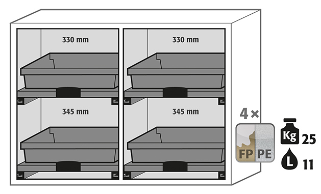 Veuillez respecter les lois, règles nationales applicables lors de la configuration d'une armoire de sécurité concernant le stockage des matières dangereuses. En cas de doute, les experts asecos restent à votre disposition.