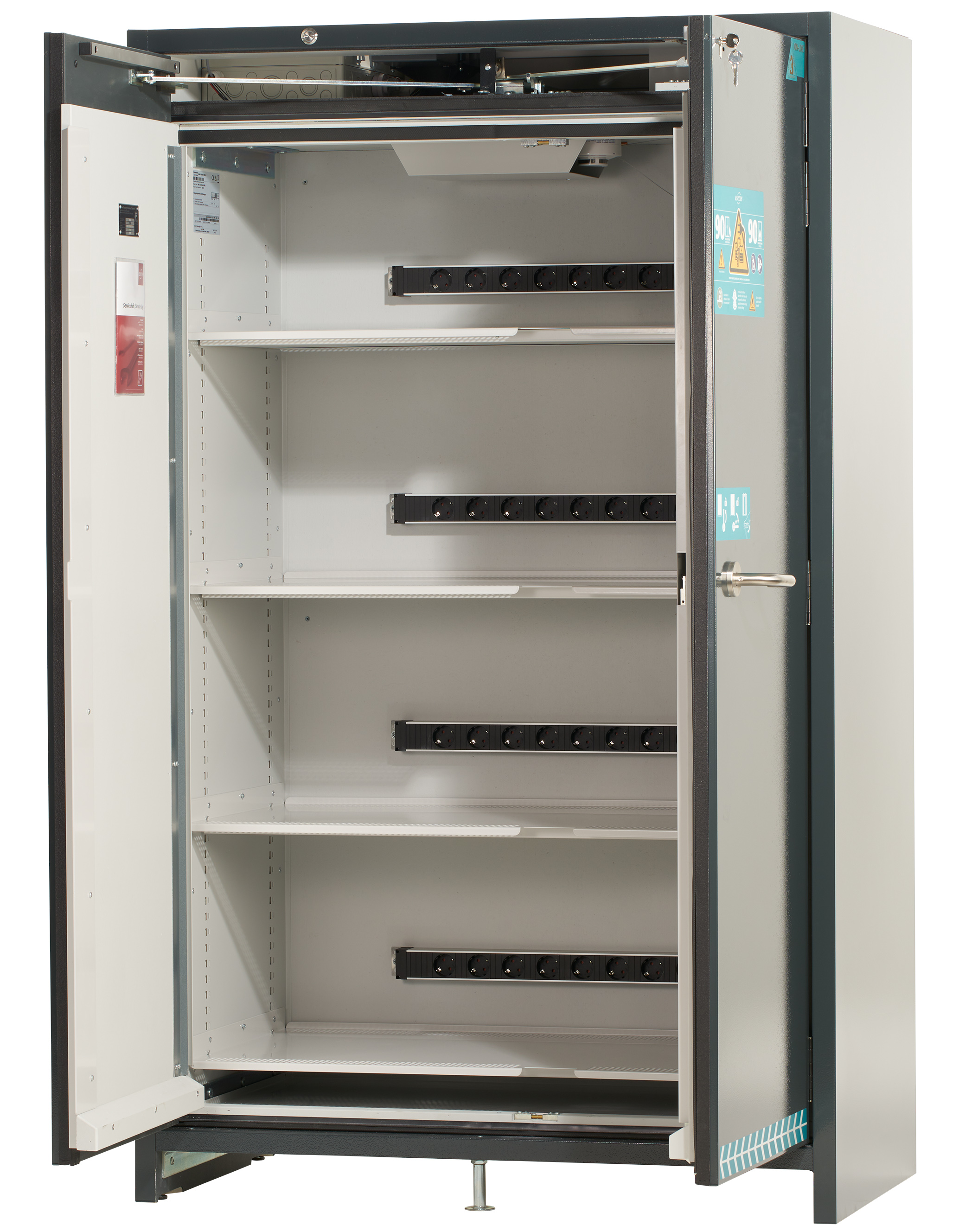 Armoire de sécurité pour batteries lithium-ion Test résistance au feu selon NF EN 14470-1 modèle IO90.195.120.065.WDEL