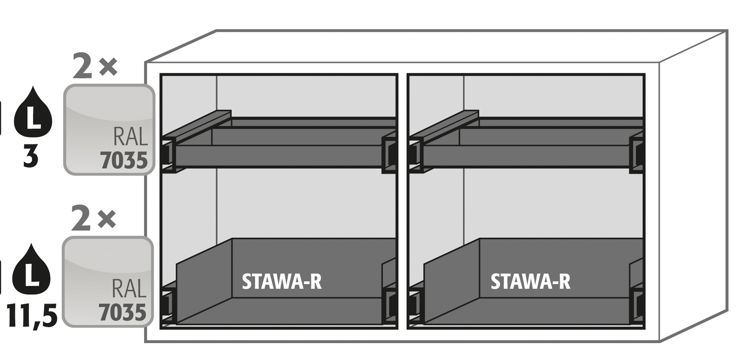 armoire de sécurité sous paillasse Test résistance au feu selon NF EN 14470-1 modèle UB30.060.110.2S