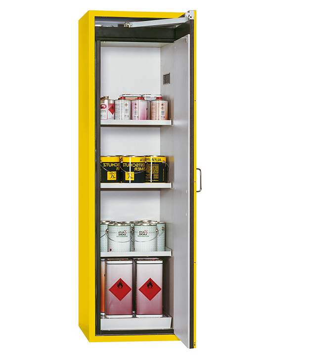 Veuillez respecter les lois, règles nationales applicables lors de la configuration d'une armoire de sécurité concernant le stockage des matières dangereuses. En cas de doute, les experts asecos restent à votre disposition.