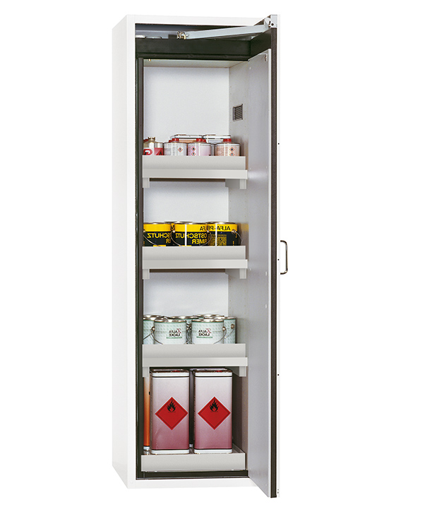 Veuillez respecter les lois, règles nationales applicables lors de la configuration d'une armoire de sécurité concernant le stockage des matières dangereuses. En cas de doute, les experts asecos restent à votre disposition.