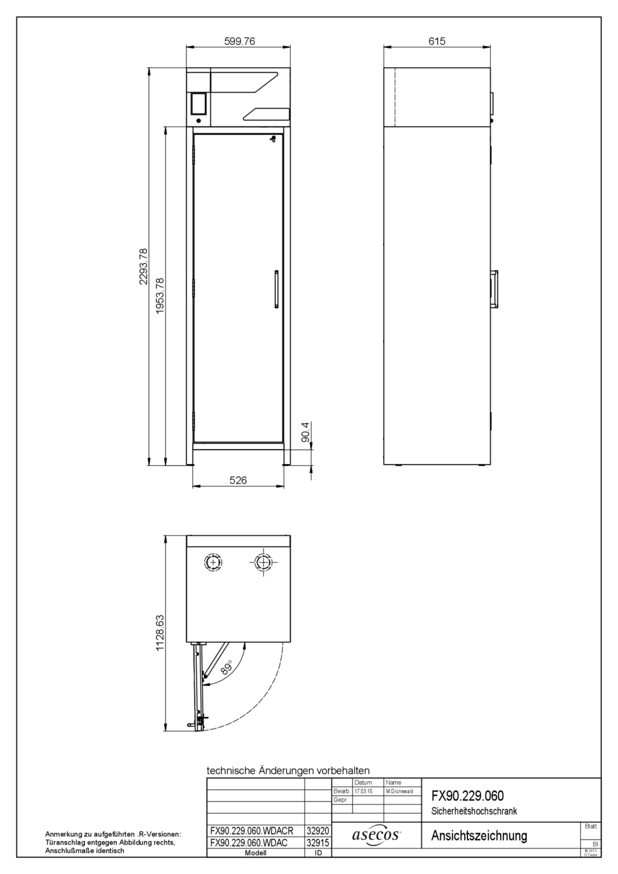 Armoire ventilée à filtration intégrée Test résistance au feu selon NF EN 14470-1 modèle FX90.229.060.WDACR