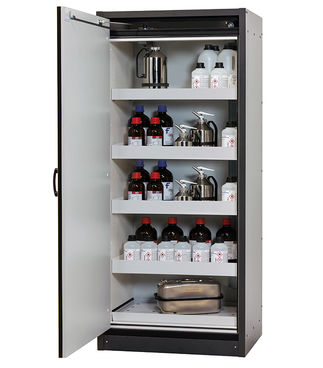 Veuillez respecter les lois, règles nationales applicables lors de la configuration d'une armoire de sécurité concernant le stockage des matières dangereuses. En cas de doute, les experts asecos restent à votre disposition.