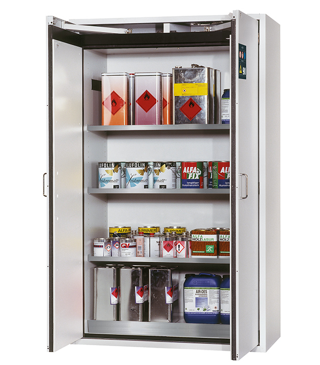 Veuillez respecter les lois, règles nationales applicables lors de la configuration d'une armoire de sécurité concernant le stockage des matières dangereuses. En cas de doute, les experts asecos restent à votre disposition.