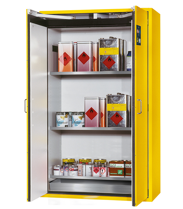 Veuillez respecter les lois, règles nationales applicables lors de la configuration d'une armoire de sécurité concernant le stockage des matières dangereuses. En cas de doute, les experts asecos restent à votre disposition.