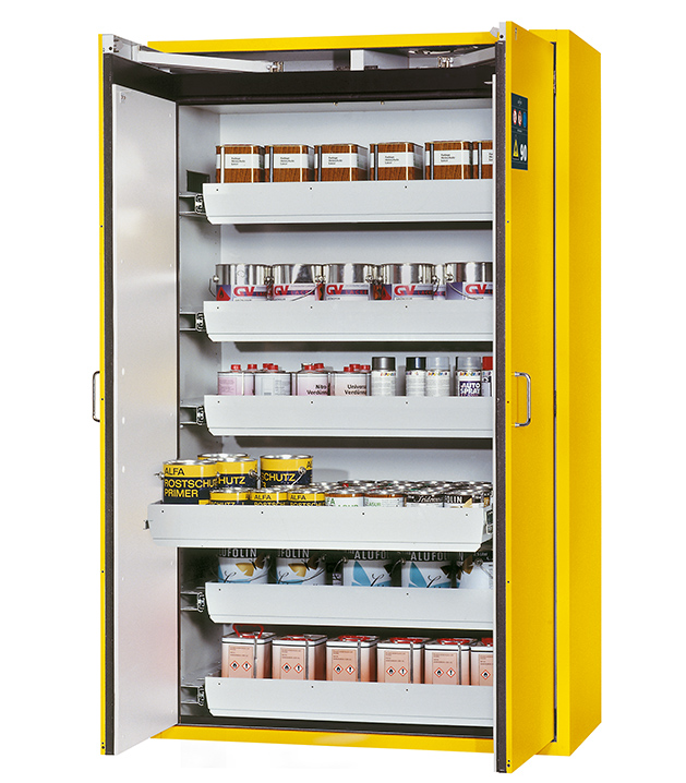 Veuillez respecter les lois, règles nationales applicables lors de la configuration d'une armoire de sécurité concernant le stockage des matières dangereuses. En cas de doute, les experts asecos restent à votre disposition.