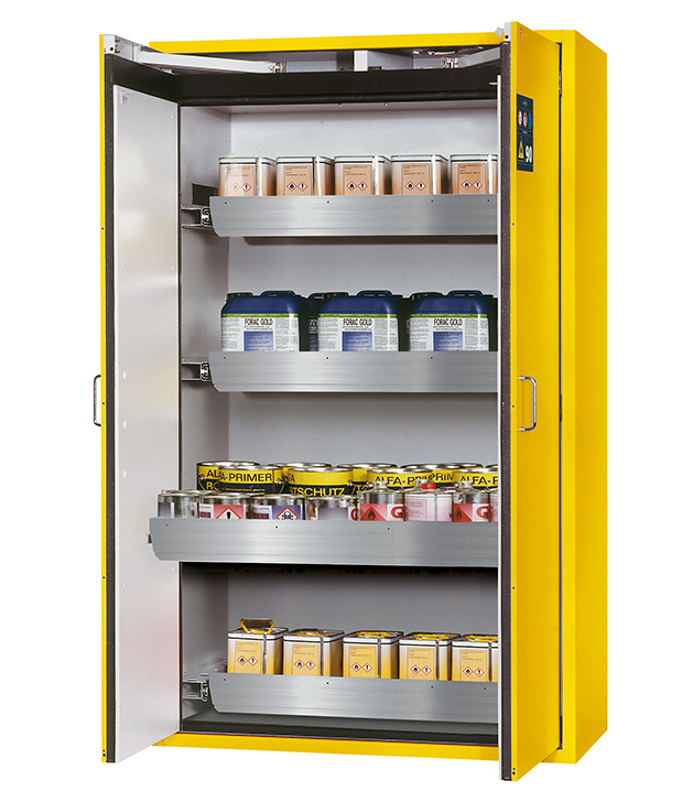 Veuillez respecter les lois, règles nationales applicables lors de la configuration d'une armoire de sécurité concernant le stockage des matières dangereuses. En cas de doute, les experts asecos restent à votre disposition.