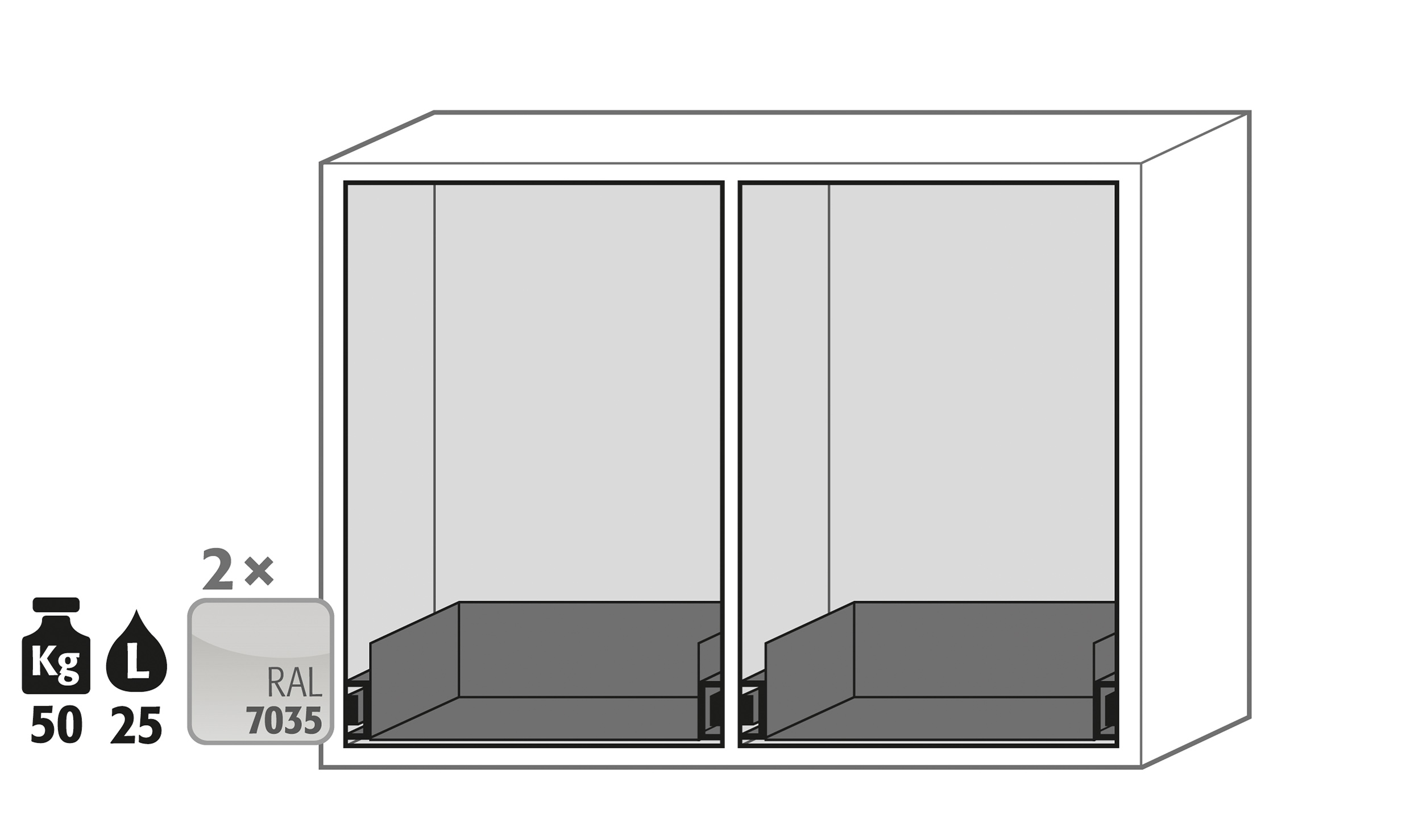 gris clair (RAL 7035), équipée avec 2 x tiroir (tôle d'acier revêtement époxy)
