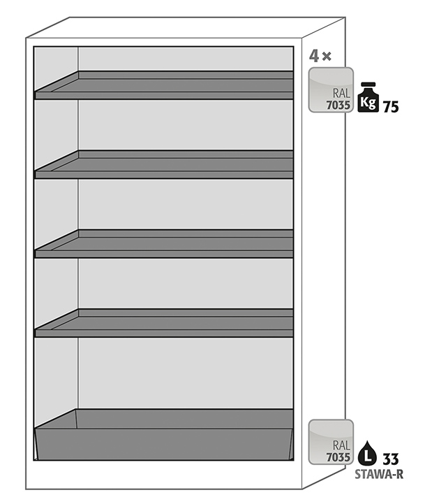 rompkleur antracietgrijs, met draaideuren in signaalgeel (RAL 1004), Interieur met 4 x legbord, 1 x bodemopvangbak (plaatstaal met epoxy coating)