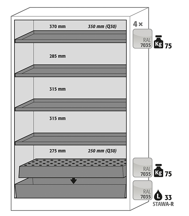 - Robuust en duurzaam: stabiele buitenbehuizing van met melaminehars gecoate, vuurvaste speciale platen, 3-voudige deurophanging, volledig sluitmechaniek en veiligheidselementen ter bescherming tegen corrosie buiten de opslagruimte gemonteerd, hoogwaardig en krasbestendig deurfront met structuuroppervlak met epoxy coating