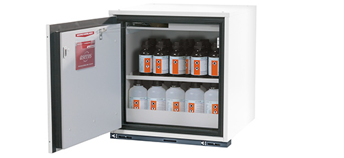 laboratorium wit (vgl. RAL 9016), Interieur met 1 x legbord, 1 x inzetrooster, 1 x bodemopvangbak (plaatstaal met epoxy coating)