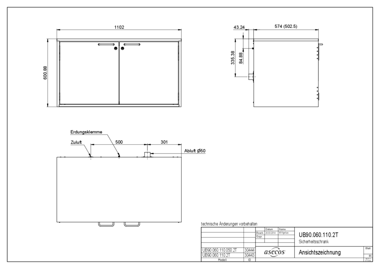 brandveiligheidsonderbouwkast type getest volgens EN 14470-1 model UB90.060.110.050.UL.2T