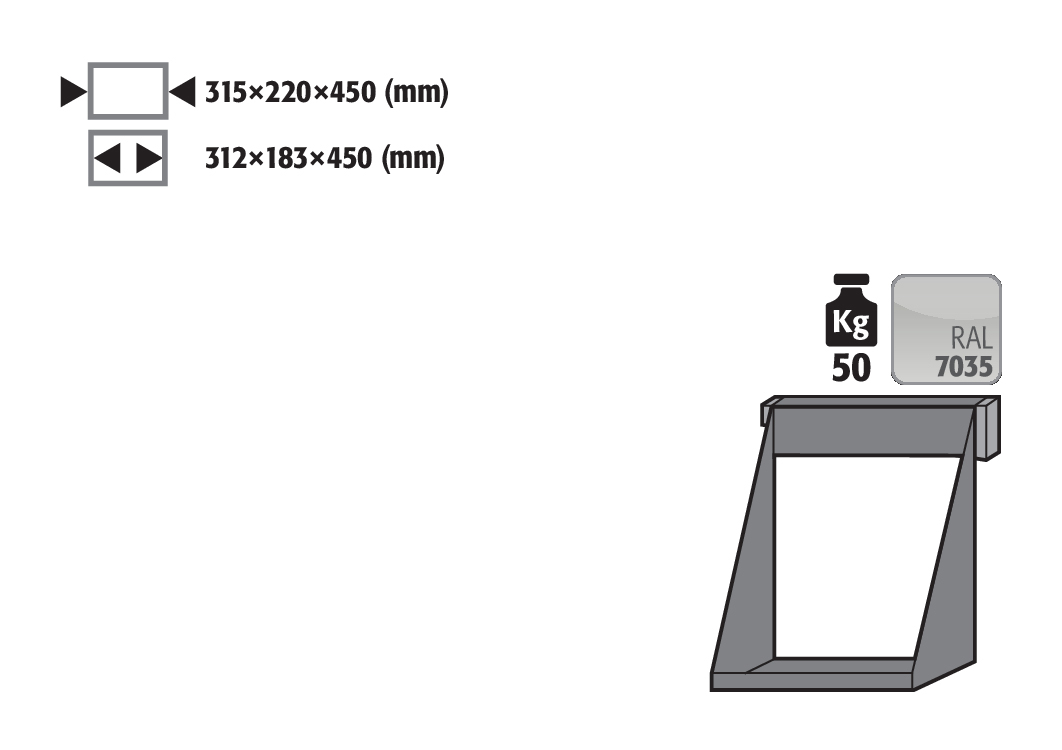 - Afmetingen inwendig B x D x H (mm) 312 x 183 x 450