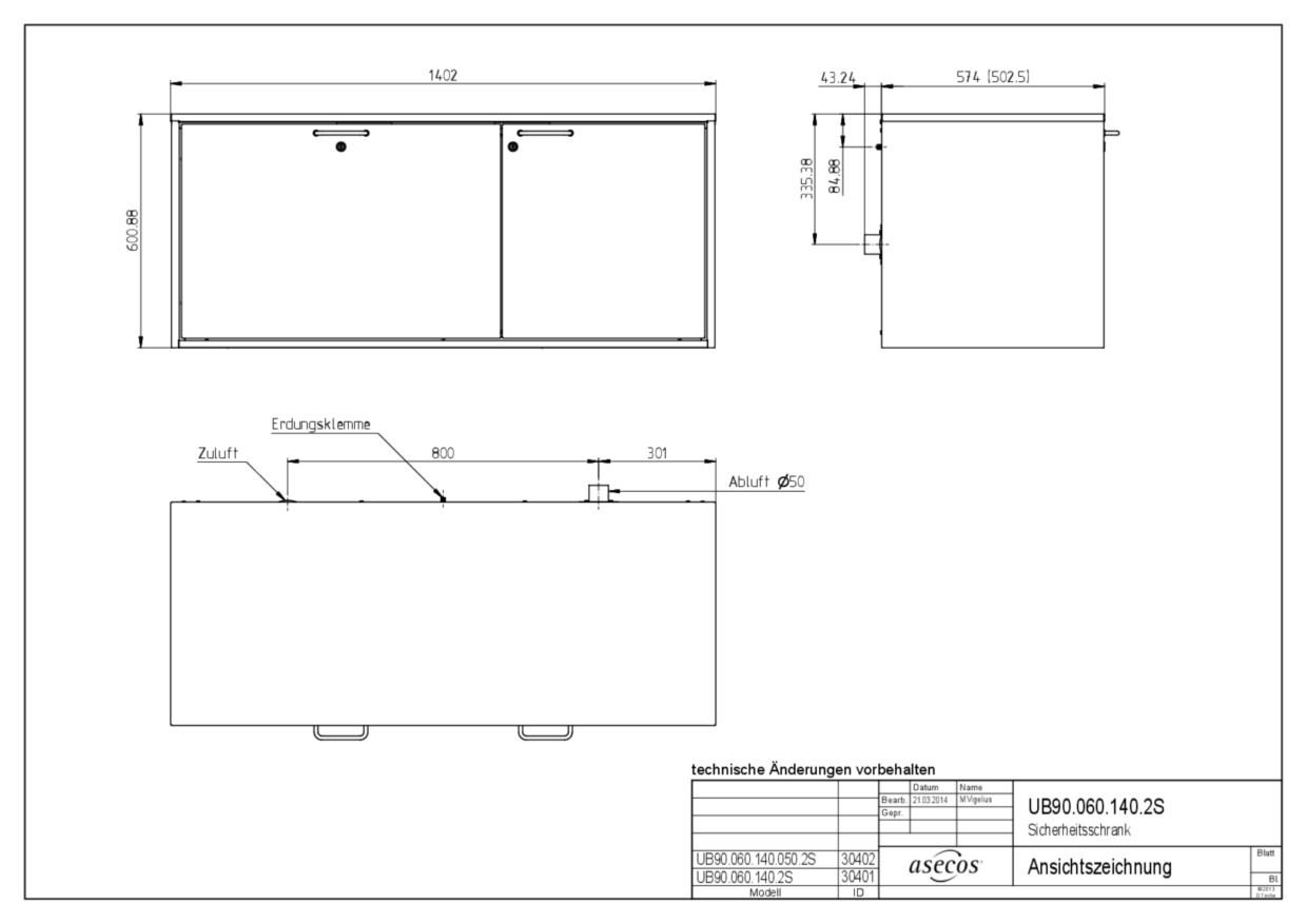 brandveiligheidsonderbouwkast type getest volgens EN 14470-1 model UB90.060.140.050.UL.2S