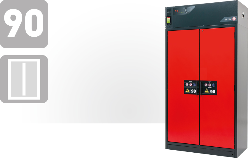 Brandveiligheidsopslagkast met geïntegreerd recirculatieafzuigsysteem voor de opslag en filtratie van de meest uiteenlopende gevaarlijke stoffen