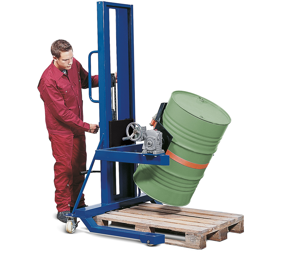 - Grijpsysteem met draaibaar gelagerde prismabekken - ideaal voor 60 tot 220 liter kunststof L-ring- en dekselvaten alsmede 60 en 200 liter stalen kraal- en spanringvaten