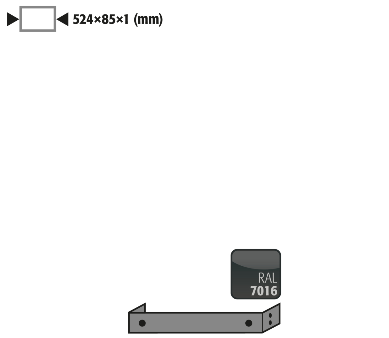 | Uitwendige afmetingen B x D x H | 524 x 35 x 85 mm |