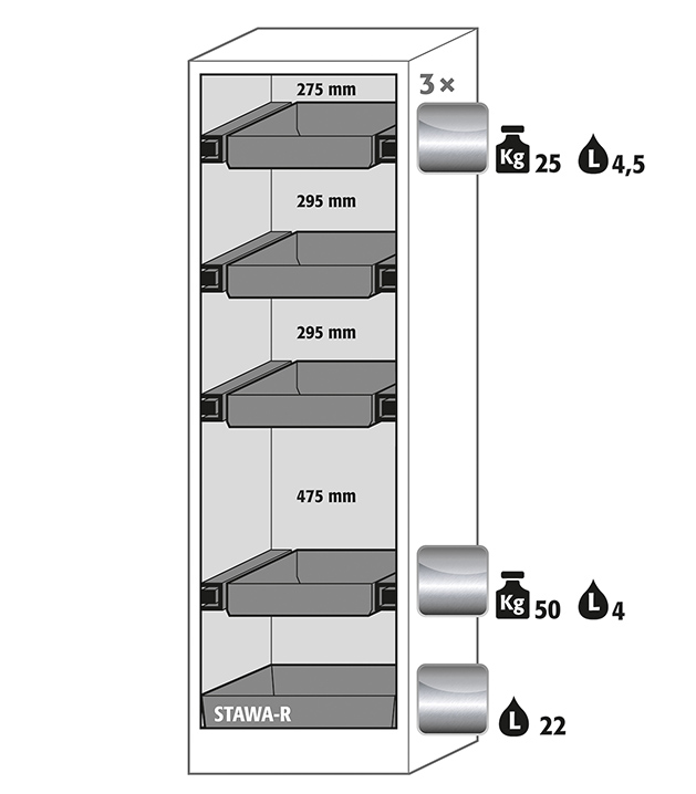 Neem bij de configuratie van een veiligheidskast de geldende nationale regels en voorschriften voor de opslag van gevaarlijke stoffen in acht. Als u het niet zeker weet, helpen de experts van asecos u graag verder.