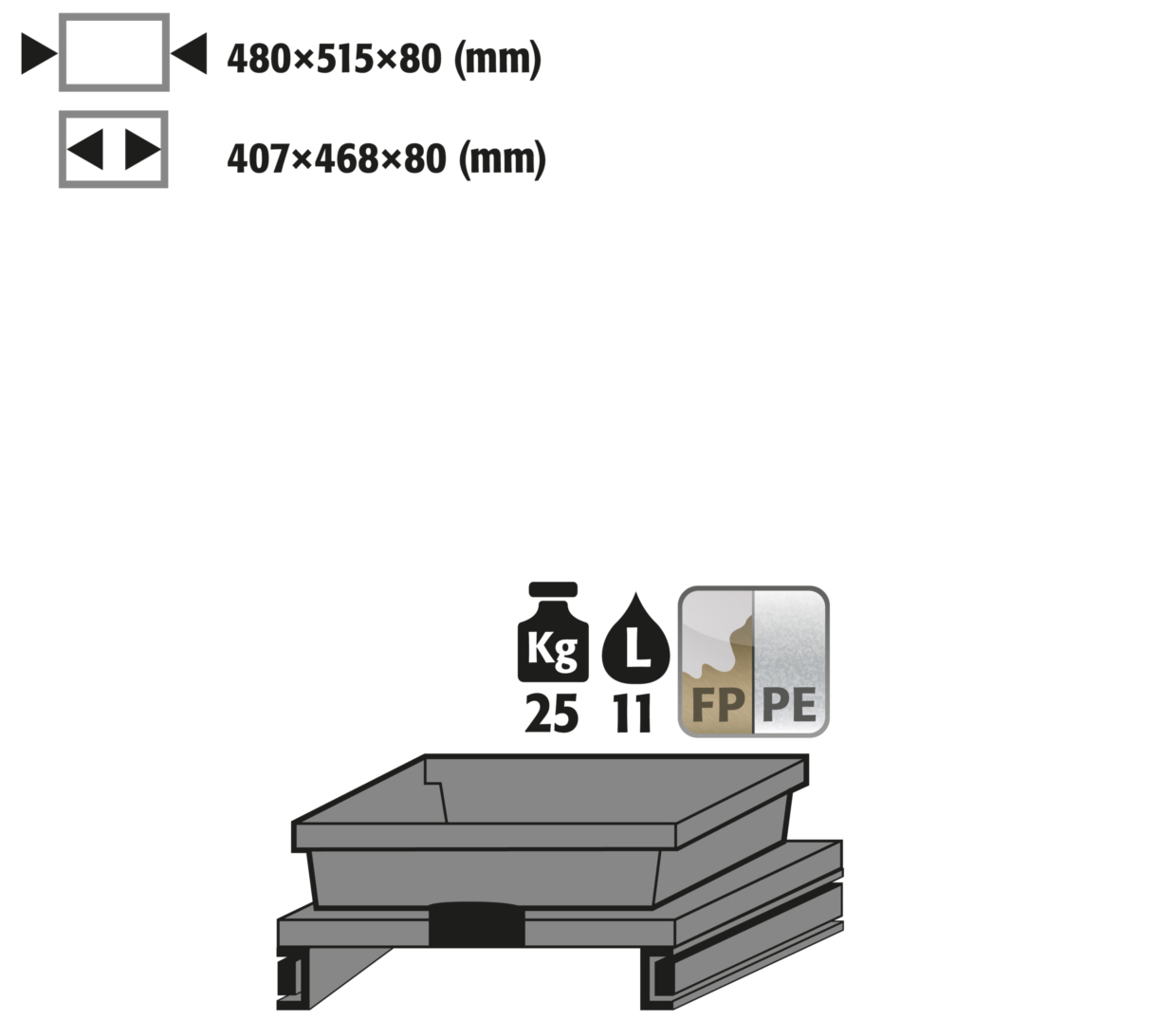 - Dimensioner interiör: B x D x H (mm) 407 x 468 x 80